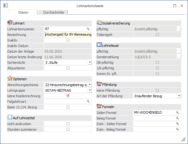 Nachdem für die Unterbrechungszeiträume teilweise nur "fiktive" Bezüge herangezogen werden müssen (diese Bezüge werden ja nicht tatsächlich abgerechnet und ausgezahlt), müssen im WinLine LOHN diese Bezüge gesondert verwaltet werden: