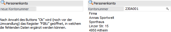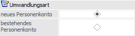 Abhängig von der Einstellung "Umwandlungsart" kann in diesem Bereich eine neue oder eine bestehende Personenkontonummer angegeben werden.