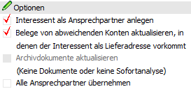 Ø Belege von abweichenden Konten aktualisieren, in denen der Interessent als Lieferadresse vorkommt.
