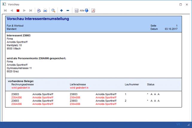 Alle Belege, welche direkt für den Interessenten geschrieben wurde, werden immer angepasst, d.h. die Interessentennummer wird durch die Personenkontennummer ersetzt!
