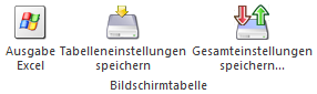 Im Gegensatz zu "Tabelleneinstellungen speichern" können mit "Gesamteinstellungen speichern" mehrere Tabellenaufbauten gespeichert und nach Wunsch geladen werden. Zusätzlich werden Sonderfunktionen der Tabelle (z.B. "Spalte gruppieren") ebenfalls bei der Speicherung bedacht.