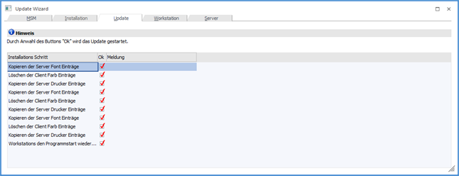 Zusätzlich dazu wird auch noch ein MSM-Protokoll am Bildschirm ausgegeben, das ebenfalls noch alle durchgeführten Aktionen auflistet. Wenn dieser Punkt erreicht wurde, dann das Fenster durch Drücken der ESC-Taste geschlossen werden.
