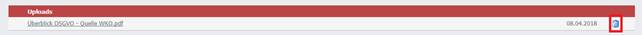 Wird ein Upload nicht mehr benötigt, so kann dieses mittels "Löschen" Button aus einem Deckblatt wieder entfernt werden.