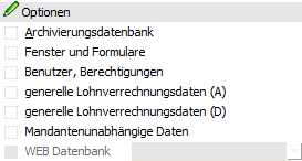 Wenn diese Option aktiv ist, dann wird der Inhalt der mesolohn0.SRV auf den SQL-Server kopiert. Diese Option kann nur bei Einsatz des WinLine LOHN für Österreich aktiviert werden (wenn die entsprechende Lizenz vorhanden ist).