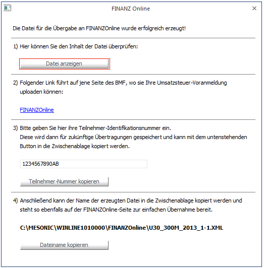 Die vom Programm erzeugten XML-Dateien werden standardmäßig immer im Verzeichnis FINANZOnline - einem Unterverzeichnis des Programmverzeichnisses - abgestellt und können von dort geöffnet werden.