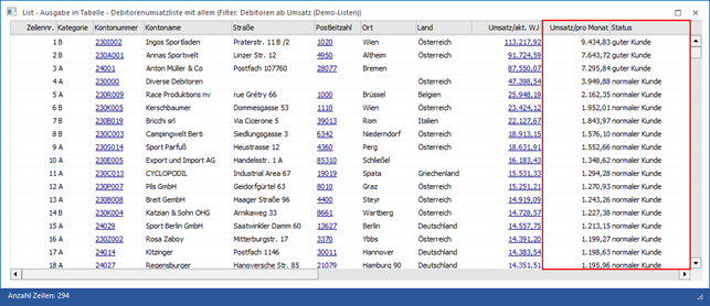 Es soll in einer Spalte einer Debitorenliste der Vorjahresumsatz ausgegeben werden. Da diese Information nicht direkt zur Verfügung steht (alle Daten der Liste sind in der Regel basierend auf dem aktuellen Wirtschaftsjahr), wird die benötigte Zahl per SQL-Zugriff geholt.