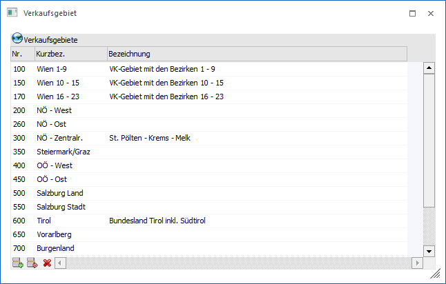… geöffnet werden kann, können Verkaufsgebiete definiert werden. Diese werden in weiterer Folge den Vertretern zugewiesen und dienen u.a. als Selektionskriterium für Auswertungen.