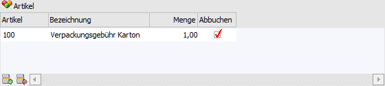 Die Option "Abbuchen" bestimmt, ob beim Belegdruck der Lagerstand des Artikels verändert wird.