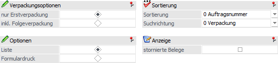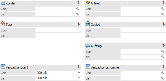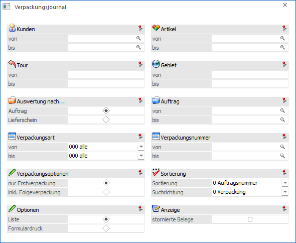 Die Ausgabe des Verpackungsjournals kann gemäß den folgenden Kriterien eingegrenzt werden: