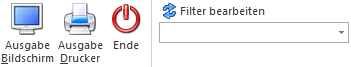 Mit Hilfe des Buttons "Ausgabe Bildschirm" oder der Taste F5 wird die Auswertung am Bildschirm ausgegeben.