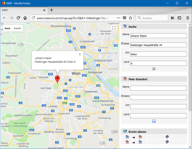 Wenn dieser Button angeklickt wird, wird - sofern eine Internetverbindung vorhanden ist - eine Internetseite geöffnet, in welcher der Standort der gewählten Adresse angezeigt wird.