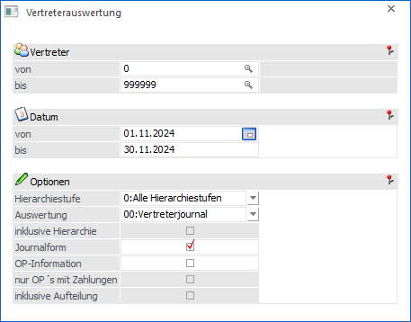 Folgende Vertreterauswertungen stehen über eine Auswahlliste zur Verfügung: