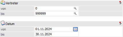 Hier erfolgt die Selektion auf den zu berücksichtigen Datumszeitraum. Je nach Auswertung ist hierbei das Fakturendatum oder das Übernahmedatum gemeint.