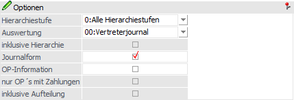 Bei aktivierter Option erfolgen zwischen den einzelnen Vertretern keine Seitenumbrüche, d.h. die Auswertung erfolgt in Journalform. Diese Option steht nicht für die Ausgabe des Vertreterkontoblattes zur Verfügung!