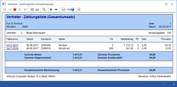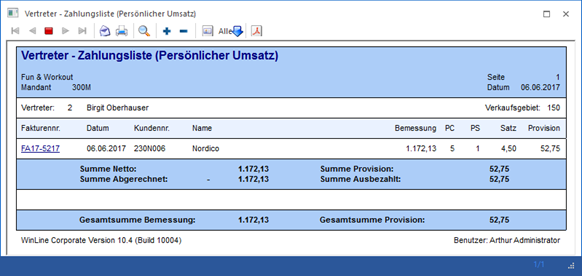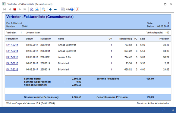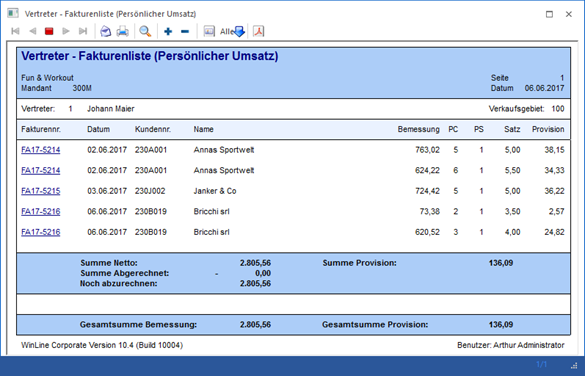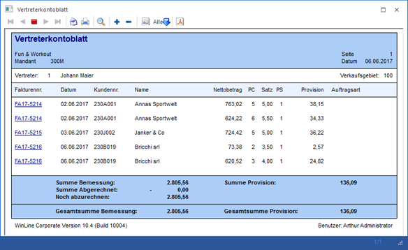 Vertreterkontoblatt werden alle provisionsrelevanten Fakturenzeilen pro