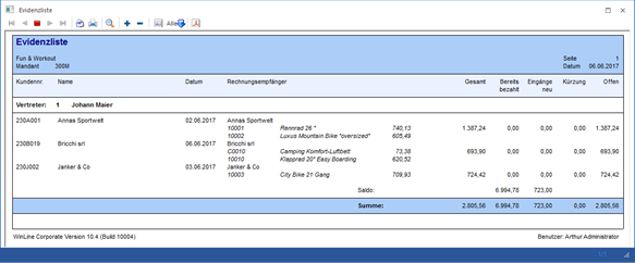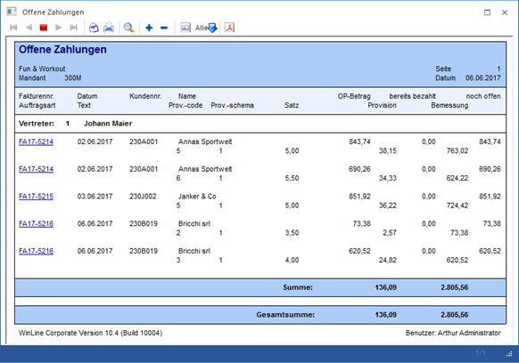 werden alle offenen Posten aufgelistet, die für den / die selektierten Vertreter