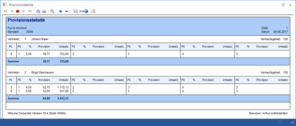 Provisionsstatistik enthält alle übernommenen Provisionsbeträge nach Vertreter