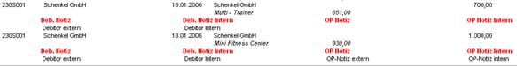 Evidenzliste auch CRM-Aktionen, einmal die OP betreffend bzw. einmal den Debitor