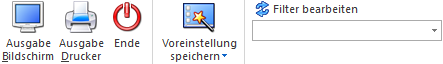 Mit Hilfe des Buttons "Ausgabe Bildschirm" oder der Taste F5 wird die Auswertung am Bildschirm ausgegeben.
