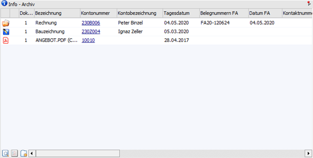 Tabellenbutton "Archiveintrag anzeigen" wird das Archivdokument mit jenem