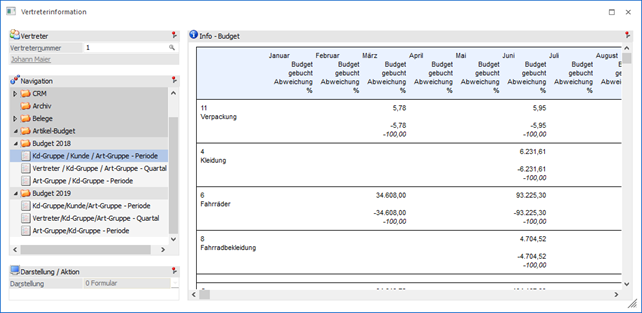 Durch Anwahl des entsprechenden Eintrags wird die gewünschte Ansicht, bezogen auf den aktuellen Vertreter, in einer Bildschirmansicht dargestellt.