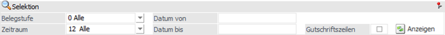 In diesem Bereich kann definiert werden, welche bzw. wie viele Belege dargestellt werden sollen. Die gewählten Einstellungen werden benutzerspezifisch gespeichert.