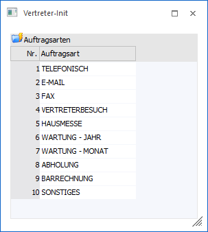 In der Tabelle der Auftragsarten können die Bezeichnungen der Auftragsarten hinterlegt werden.