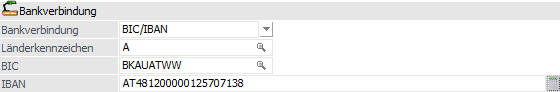 Abhängig von der Einstellung "Bankverbindung" können in diese Felder die "Bankleitzahl und Kontonummer" oder "BIC und IBAN" angegeben werden.