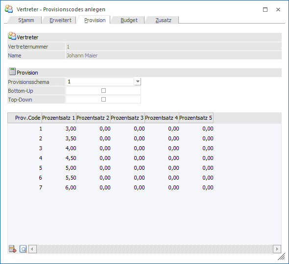 Im Vertreterstamm werden in der Provisionstabelle die