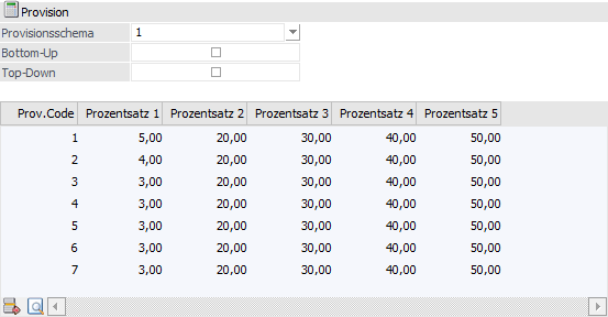Durch die Provisionssatz-Einstellung "Bottom-Up" bzw. "Top-Down" können die über- bzw. untergeordneten Vertreter ebenfalls mit einer Provision bedacht werden.