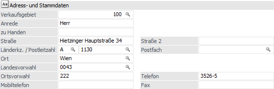 Dieser Bereich steht nur bei Vertretern zur Verfügung. Für diese können in diesem Bereich individuelle Informationen, wie z.B. "Anrede", "Straße" oder "Ort", hinterlegt werden.