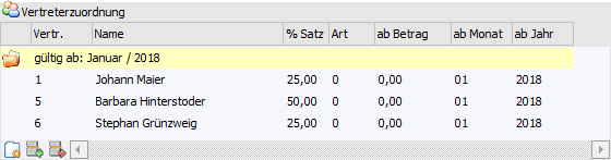 Zusätzlich ist es möglich in der ersten Zuweisung eines Vertreters bzw. einer Vertretergruppe einen Gültigkeitszeitraum für die Aufteilung festzulegen. Dieses Datum wird anschließend in der Hauptzeile dargestellt und in weiterer Folge automatisch an die weiteren Einträge vererbt.