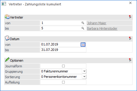 … kann eine kumulierte Zahlungsliste für Vertreter ausgegeben werden.