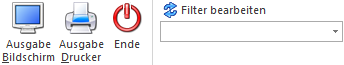 Mit Hilfe des Buttons "Ausgabe Bildschirm" oder der Taste F5 wird die Auswertung am Bildschirm ausgegeben.