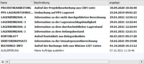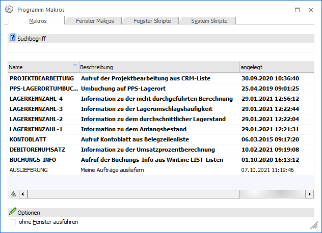 Tabelle alle WinLine Makros angezeigt. Diese werden in der Regel mit Hilfe des