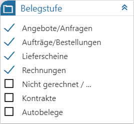 In diesem Bereich kann definiert werden, welche Belegstufen in der View 360 angezeigt werden sollen.