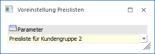 Wird im Menüpunkt "Preislistenauswertung - Register K/L-spez. Preise" der Button "Parameter" angewählt, so können damit Preislisten-Voreinstellungen abgerufen, gespeichert oder gelöscht werden. Damit können die Einstellungen, die für das Drucken von kunden-/lieferantenspezifischen Preislisten vorgenommen wurden, gespeichert werden.