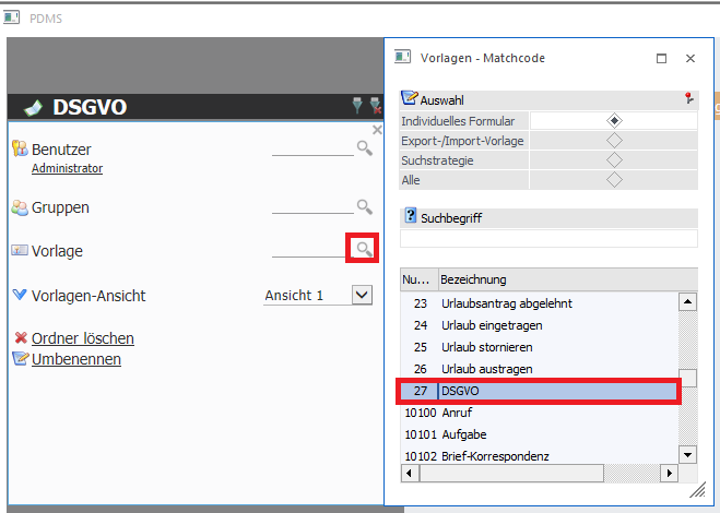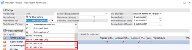 Diese Vorlagen können auch für die Erstellung einer eigenen angepassten Vorlage herangezogen werden, indem bei einer Neuanlage der Vorlage von den Standardvorlagen übernommen wird.