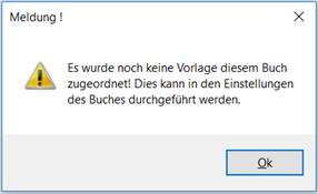 Wird bei der Anlage eines Buchs keine Vorlage ausgewählt, so erfolgt eine Meldung, sobald man das erste Deckblatt erfassen möchte: