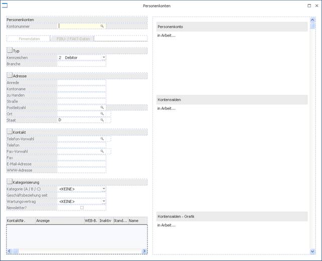 Im Gegensatz zu den anderen Buttons in den Stammdaten-Formularen können diese Buttons auch angeklickt werden, wenn noch kein Key (z.B. Kontonummer, Artikelnummer…) eingegeben wurde.