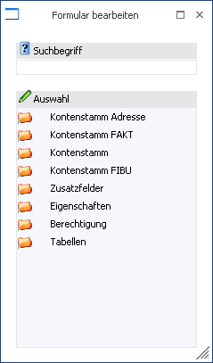 Über die Auswahlbox "Formular" kann gewählt werden, in welcher Form der Stammdatensatz bearbeitet werden soll. Wenn die Option "0 - Allgemein" gewählt wird, dann wird wieder in die "Normalansicht" mit allen Eingabefeldern zurückgeschalten.