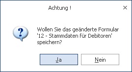 Bei einem Wechsel des Formulars bzw. beim Schließen des Fensters wird gefragt, ob die Änderungen gespeichert werden sollen, andernfalls werden die Änderungen verworfen.