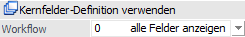 Durch Auswahl eines Workflows werden in der Tabelle "Datenfelder" nur noch jene Felder angezeigt, welche im Workflow-Wizard als "Kernfelder" deklariert wurden (dabei werden ggfs. auch die Bezeichnungen der Felder verwendet, welche in der Kernfelder-Definition im Workflow-Wizard definiert worden sind). In der Auswahlliste der Combobox stehen dafür jene Workflows zur Verfügung, in denen auch die selektierte Vorlage genutzt wird.