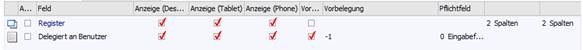 aktiviert werden (Feld "Vorbelegung" bleibt leer).