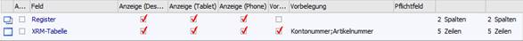 Das Unterregister "Kopfinformationen" steht nur bei individuellen Formularen des Typs "CRM" zur Verfügung. Über dieses ist es möglich für die CRM-Vorlage einen Kopfbereich zu definieren, in welchem Informationen über den CRM-Fall erscheinen. Hierfür steht in der Tabelle folgende zusätzliche Spalte zur Verfügung:
