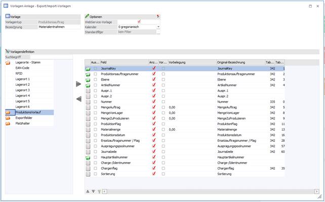 Ø Felder aus dem Bereich "Produktionslauf"