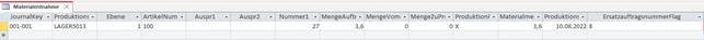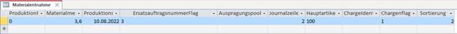 Dabei müssen nicht alle Felder belegt sein, es reicht aus, dass ein Feld mit den Mengen befüllt ist. D.h. die entnommene Menge muss nicht mehr in der Spalte Materialmenge (T342.C013) stehen.