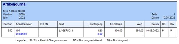 Materialentnahme eine Artikel mit Ausprägung, Charge und Lagermanagement