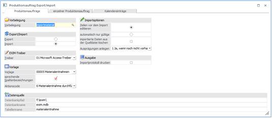 Anschließend erfolgt der Import mit Hilfe der Aktion "6 - Materialentnahmeschein drucken".