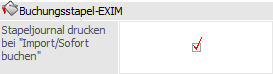 Bei aktivierter Checkbox wird beim Import, bevor der Stapel gebucht wird, das Stapeljournal ausgedruckt. Ist die Checkbox nicht aktiviert, so erfolgt kein Ausdruck des Stapeljournals.